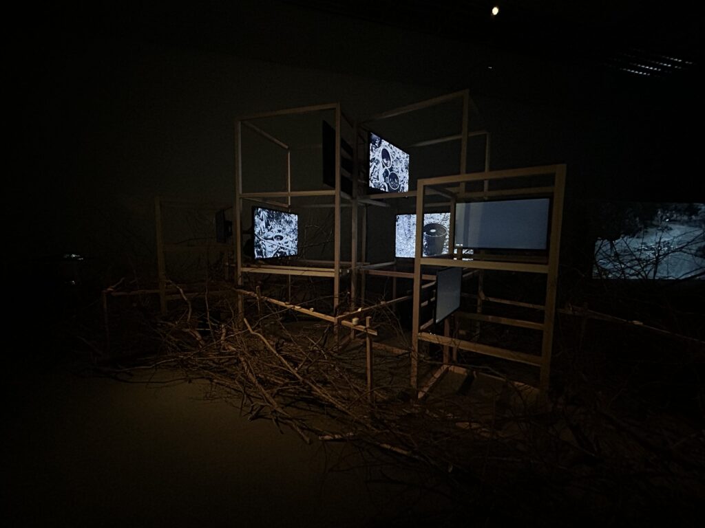 ロバート・ザオ・レンフイさんの作品は、ヒトと自然の関わりの最前線を感じる展示でした。森の中にあるヒトや生き物の痕跡、そして森を開発している現場や動物たちが街で暮らす様子などを映像や音、実物から感じることができました。開発が進む森や都市の中で生きていく人と動物の共生の道を模索してるんだなと思ったりしました。