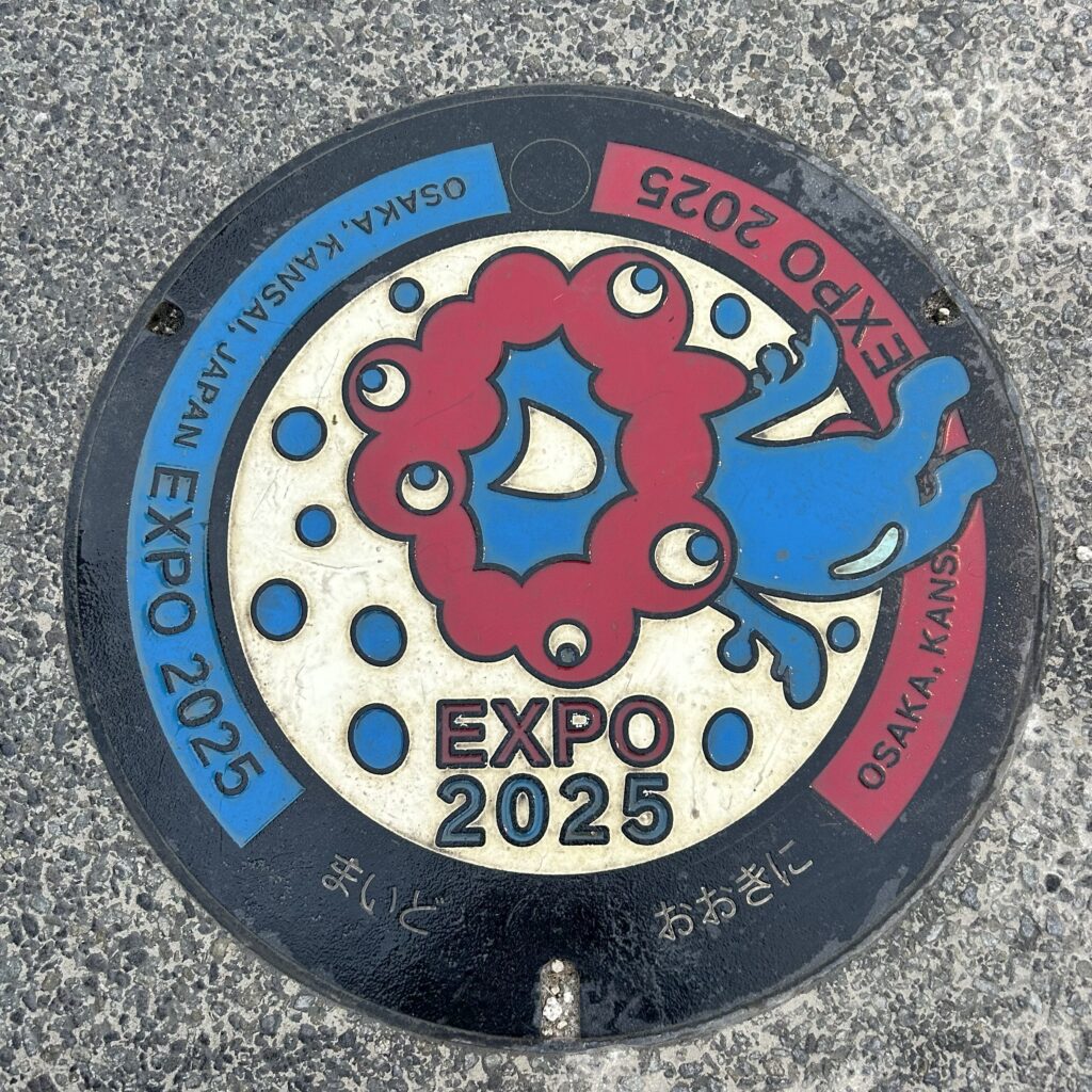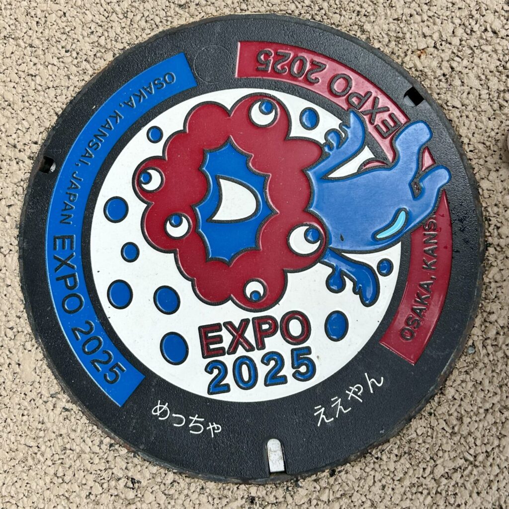 個人的な面白ポイントで、半年でマンホールはこれくらい劣化するのだなという一例。場所が違うのでなんとも言えないけど。ポジティブなワードが書いてあるので、万博来場中に見つけるのも面白かったです。