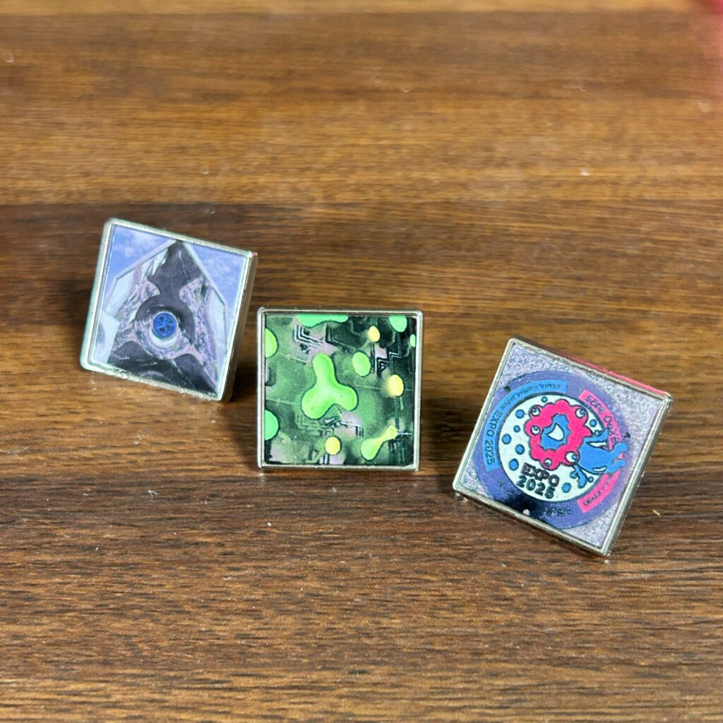 アイスタ広場では万博で撮影した写真を使ってオリジナルピンバッジを作りました。これもレガシー。なんならTシャツも作れるらしいです(笑。