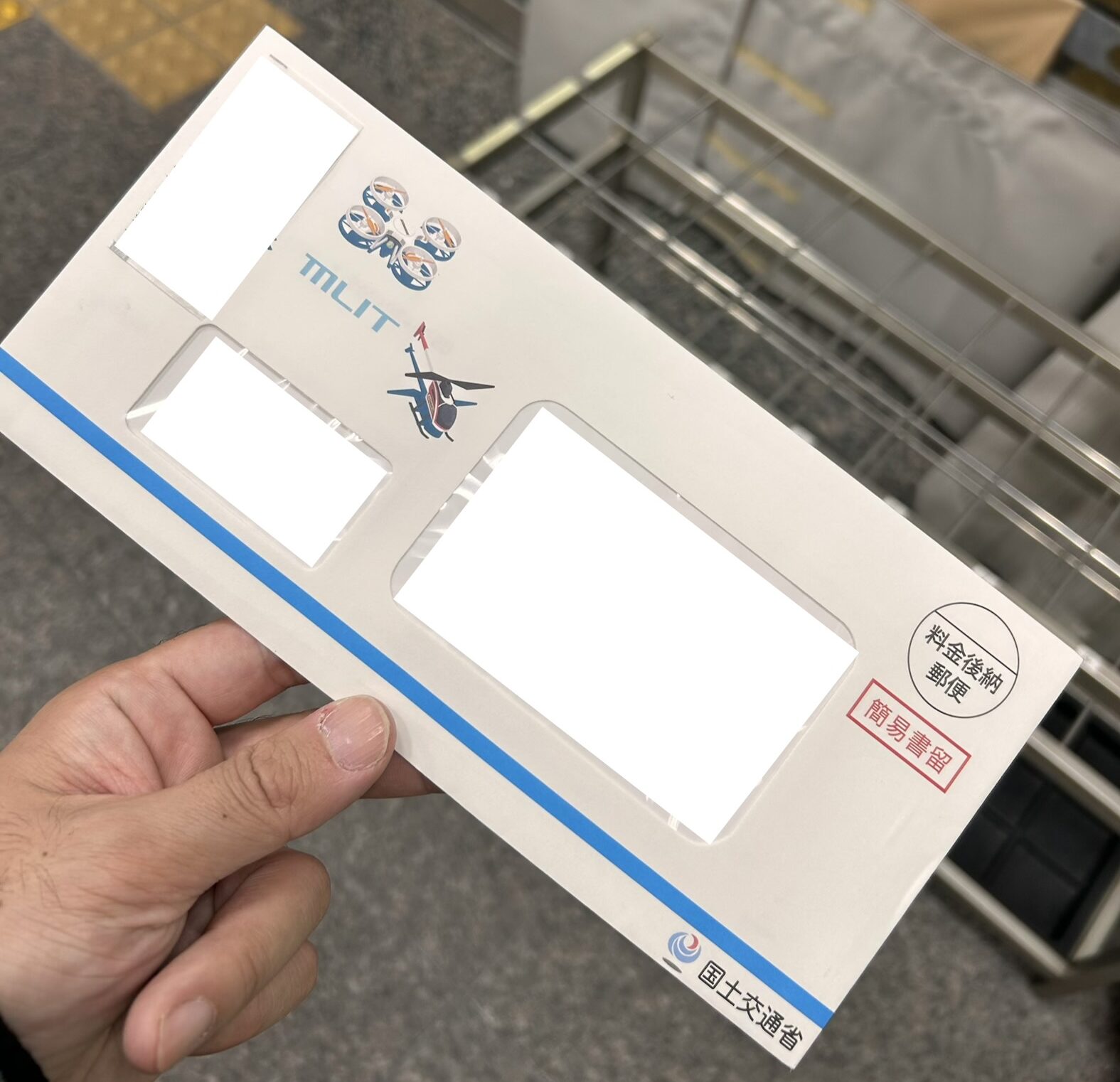 2026年1月22日。仕事を終えて帰宅すると郵便局からの不在票がポストに入っておりました。差出人が「国土交通省」となっていたので、すぐにピンときて郵便局へ郵便を撮りに行きました。簡易書留での郵送でした。まあまあ時間が経っていたので、あまり感慨などはありませんでしたが(笑、これにて二等無人航空機操縦者技能証明(基本)の取得は完了しました。